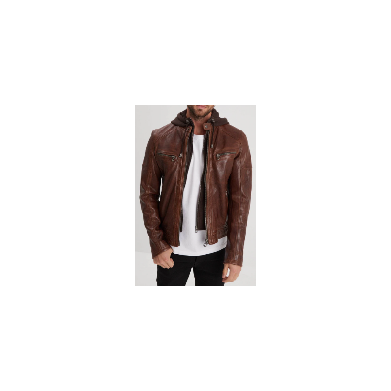 Véritable best-seller de la collection homme, ce modèle au style vintage possède cuir d'agneau lavé épais. Il dispose d'une capuche amovible grâce à un système de zip qui est particulièrement plébiscité.