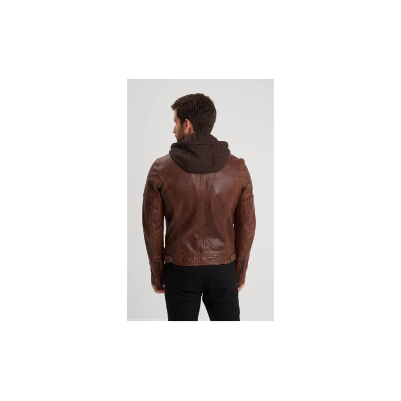Cuir motard capuche cognac Bishop+hood " DAYTONA-73"